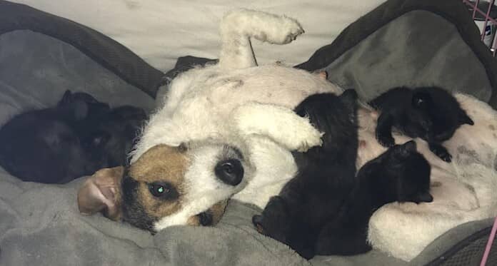 Jack Russell Pup Becomes Surrogate Mom to Six Abandoned Kittens, Feeding Them With Her Own Milk